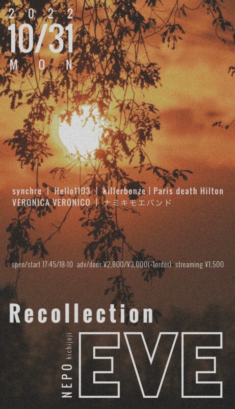 2022.10.31 (Mon) at 吉祥寺NEPOsynchre / Hello11D3 / killerbonze / Paris death Hilton / VERONICA VERONICO / ナミキモエバンド