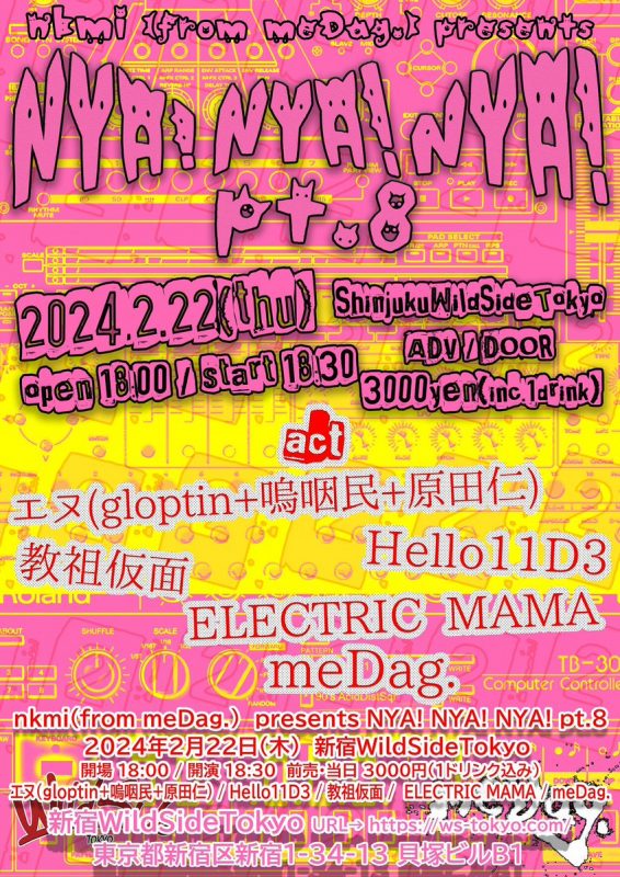 エヌ(gloptin+鳴咽民+原田仁)/ Hello11D3 / 教祖仮面 / ELECTRIC MAMA / meDag.